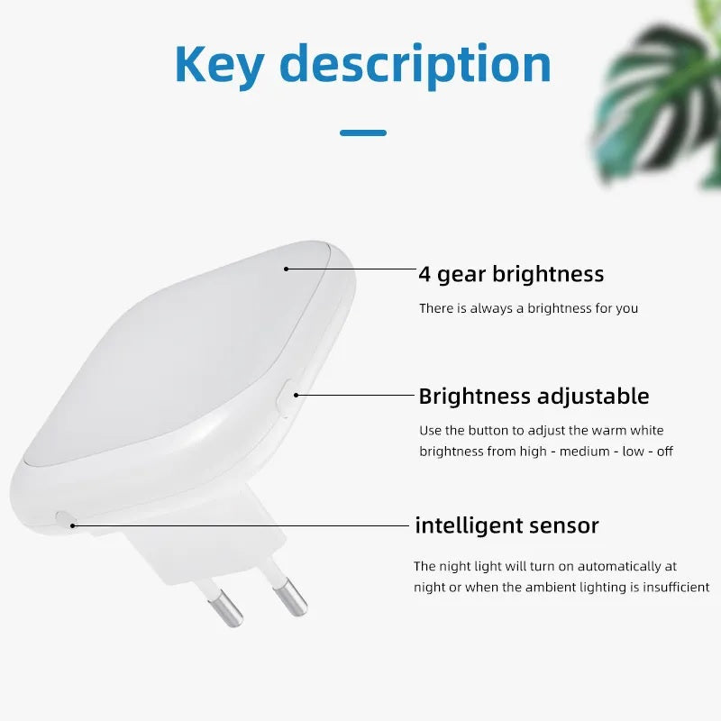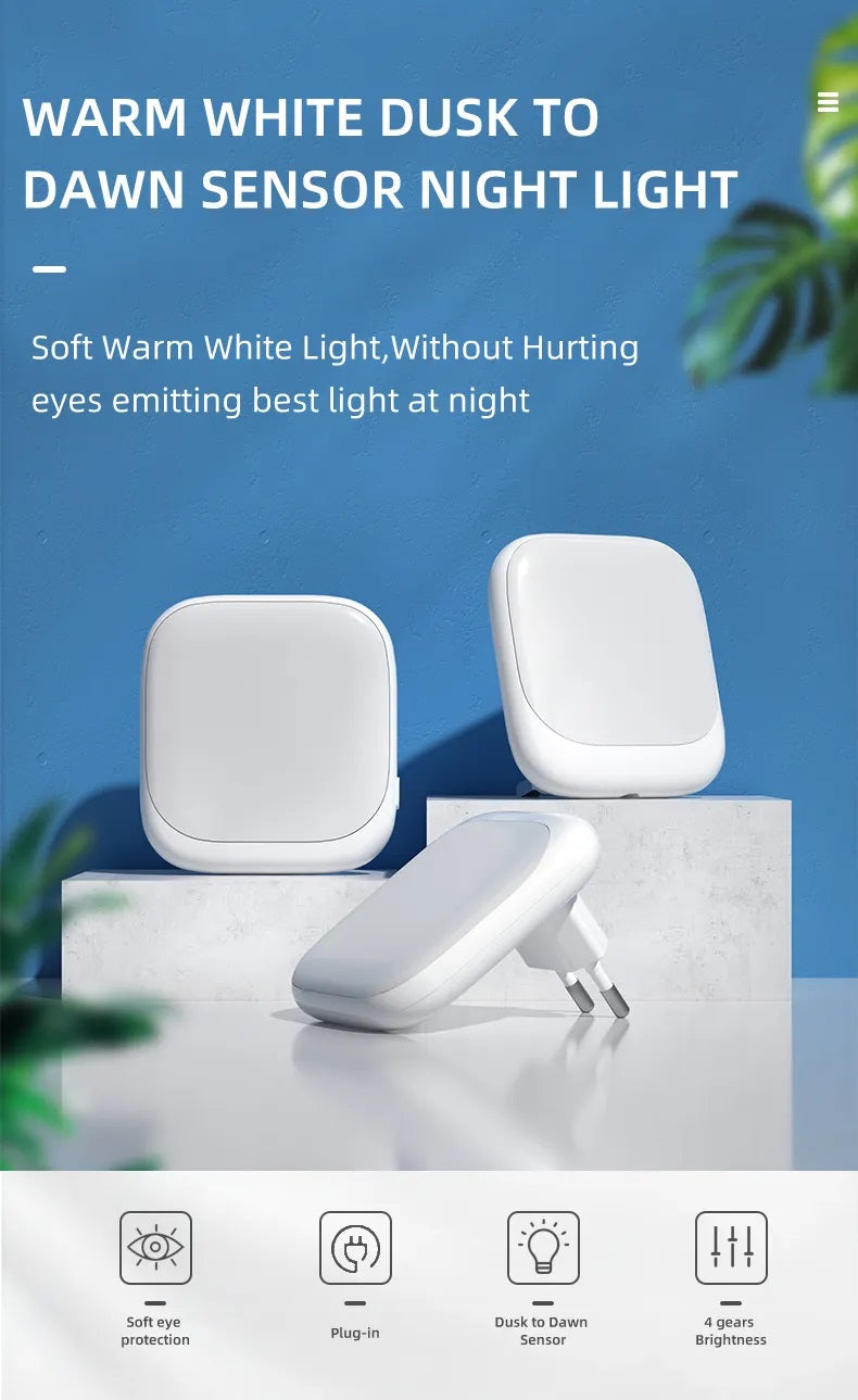 - Nachtlicht-Steckdose mit Dämmerungssensor, warmweißes Licht (2700K), perfekt für Kinderzimmer, Schlafzimmer, Treppenhaus oder Küche.