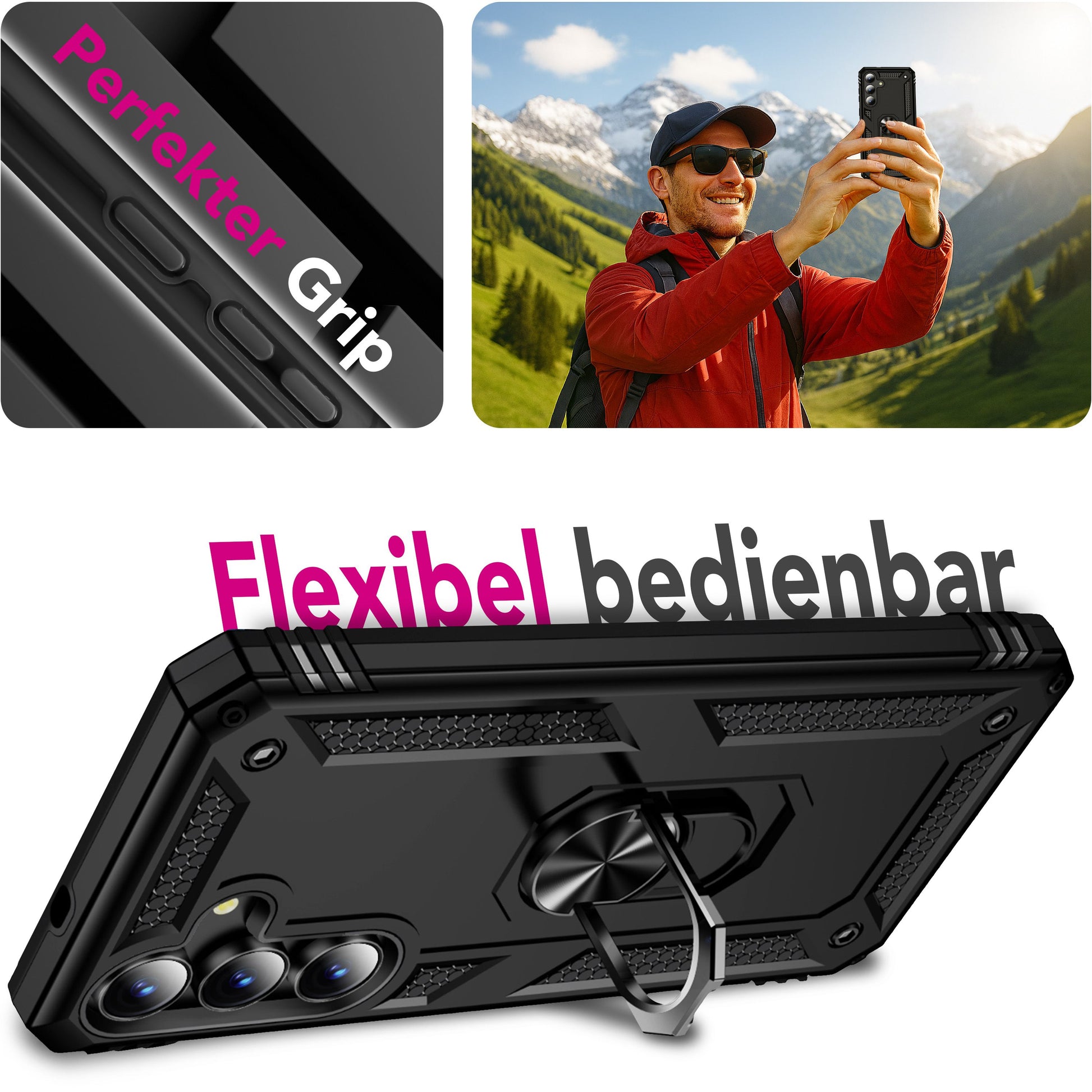 NALIA Hülle RingDefend für Samsung Galaxy S25 FE (Military-Grade Schutz) - Robuste Panzerhülle mit 360° Dreh-Ring & Kickstand, Schlagfest & Stoßabsorbierend, Armor Case - Schwarz